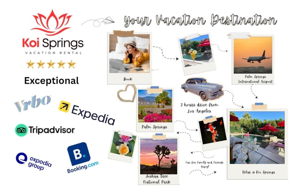 Experience the best of Greater Palm Springs, Joshua Tree National Park, and Coachella Valley from one central location. Whether you’re planning a spa weekend, a festival getaway, or a desert adventure, Koi Springs is your ideal home base.
